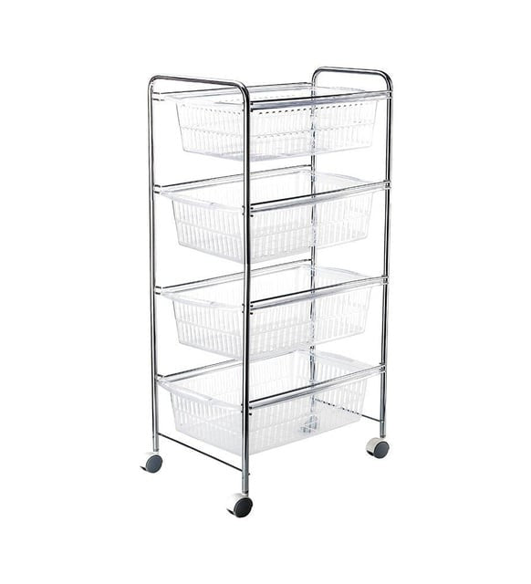 Happy Life 4 Katlı Krom Plasiık Sepetli Sebzelik, Meyvelik ile meyve ve sebzelerinizi düzenli bir şekilde koyabilirsinz.