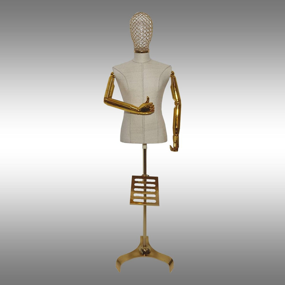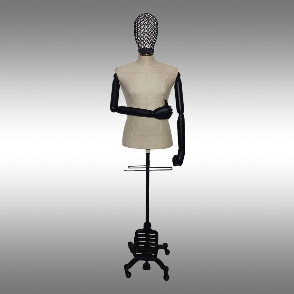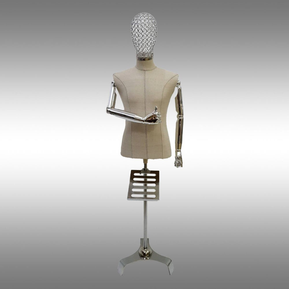 GalvanizRaf® Erkek Ayaklı, Tel Kafalı ve Ahşap Kollu Plastik Terzi Manken